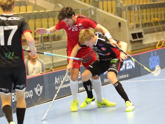 I andra perioden gör FBC Lerum en bra start mot ett Mölndal som backar ner något i sitt försvarsspel. FBC har ett högre bolltempo och ett lite mer kreativt passningsspel men det är ändå Mölndal som gör 0-2 då det såg ut att finnas lite luckor i täcket framför mål. Kort därefter gör Mölndal även 0-3 mot ett chockat FBC när ett dragskott från halva plan letar sig in i krysset bakom Viktor Wedlin i Lerums mål, tid 7.34. FBC går direkt ut i nästa möte och skapar ett mäktigt tryck men det vill sig inte. Halva matchen har gått utan ett FBC-mål…ovanligt. FBC får sedan ett powerplay efter 11.18 och efter en minut i detta gör Lerum sen äntligen sitt första mål när Vidar Tirén flippar fram bollen till Richard Westman som bankar in bollen vid stolpen. Matchbilden fortsätter, stort bollinnehav för FBC och ett tight Mölndalsförsvar. 15.37 närmar sig FBC lite till när Johan Dahlqvist gör ett patentmål, ett dragskott som letar sig in till 2-3. Nu känns det bra men en snygg flippass och ett volleyskott därpå ger 2-4 efter 16.28.