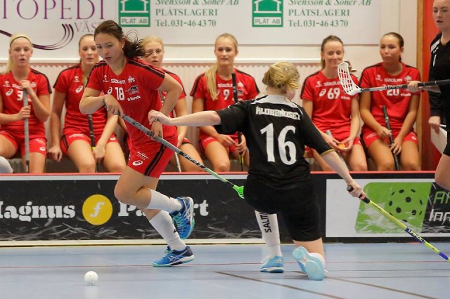 Toppmötet mellan Lerum och Lindås startade i ett rasade tempo där Lerum i den första perioden var det bättre laget. Lerum fick en tidig ledning när Anna Bergendahl vände bort sin försvarare och serverade Sandra Hawerman öppet mål till 0-1. Det fanns bud på fler mål för Lerum som stora stunder fick bra tryck mot Lindås och kunde rulla runt i anfallszon. Efter 11.30 så kvitterade ändå Lindås när en av deras duktiga skyttar placerade in bollen i bortre hörnet från sin backposition. Lerum klarade sedan av ett boxplay mot slutet av perioden och 1-1 stod sig till pausvila.