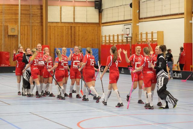 FBC Lerum hade mycket svårt med Guldhedens höga press till att börja med i första perioden. Gång efter gång slogs uppspelen rätt i gapet på Guldheden som fick massor av bjudningar och därmed målchanser som Maria Ladan i FBC-målet förtjänstfullt räddade. Med lite tur hade Guldheden under första 10 minuterna lett med ett par mål. Matchbilden ändrades något efter att Josefine Wollberg dundrade in 1-0 efter drygt halva perioden, 10.35. Det blev än tydligare när Lerums skyttedrottning Sofia Brydolf bara 20 sekunder senare fyllde på med 2-0. Resten av perioden blev det lugnare och ett mer vårdat spel från Lerums sida men skottstatistiken 10-14 ljög inte.