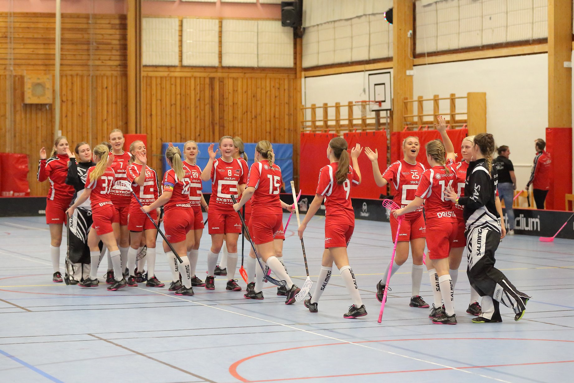 Guldheden reducerar efter fyra minuter när FBC inte fick bort bollen från slottet och det utnyttjade Guldheden till 2-1. Lerums andrafemma gjorde ett riktigt bra möte där man under en minut malde ner Guldhedens försvar och efter ett antal skottförsök hittade till slut Stephanie Borg-Nilsson fint fram till Cajsa Reuterberg som slog in 3-1 efter 6.57. Ett passivt hemmaförsvar lät sedan Guldhedens Emilia Lindberg traska fram och ohotad sikta in sig på bortre krysset till 3-2 efter 7.25. Guldheden får energi av målet och kvittera därefter på en retur till 3-3, tid 11.42. FBC Lerum får i slutet av perioden till ytterligare ett sånt där byte där man under lång tid pressar tillbaka Guldheden och även denna gång resulterar det och det är Sofia Brydolf som får göra sitt andra mål för dagen frispelad av Helena Lindblad när minuten återstod av andra perioden. Skotten slutade i denna period 15-5 men Guldheden vinner den med 2-3. Lagledningen i FBC har här under periodens andra halva börjat stuva om och lufta hela bänken vilket borde ge resultat i tredje.