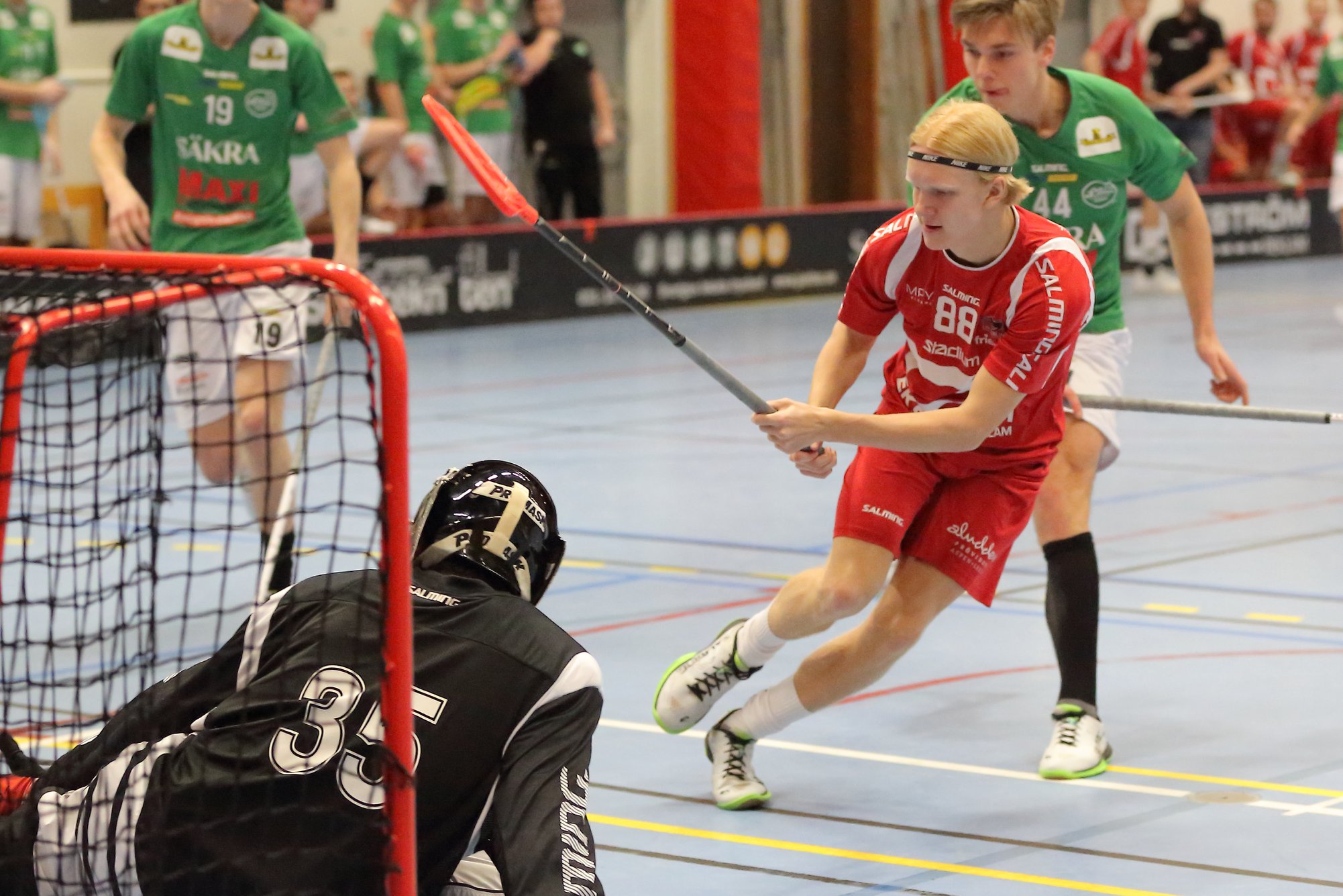 Oscar Johansson är en av de unga spelarna som under den gångna säsongen spelat till sig en ordinarie plats i A-laget och där gjort sig känd som en tempostark back. I JAS-kvalet blev det respass i sista kvalrundan i Sudden death. Men innebandyfesten väntar trots det i P16-klassen.