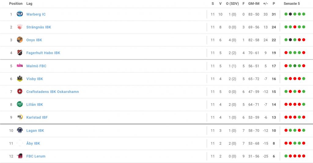 Serietabellen idag när FBC inte har de tre poängen från Onyxmatchen.